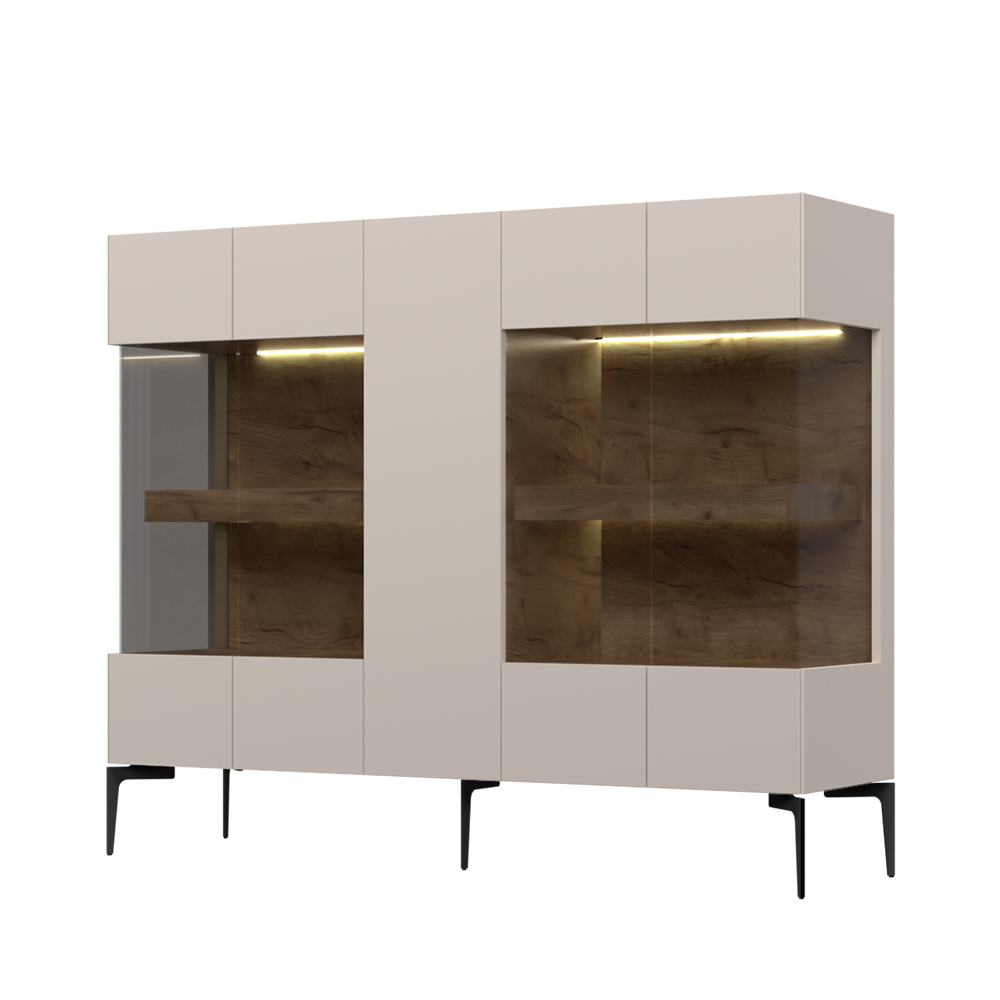Bufet pentru living din colecția Sky45, cu o ușă plină și patru din sticlă.