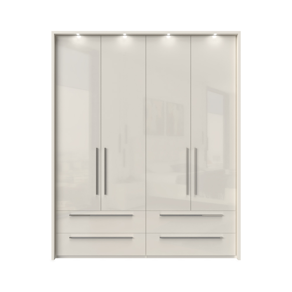 Partea din față este acoperită cu lac UV lucios, disponibil în două nuanțe: bej cald sau alb cristalin;