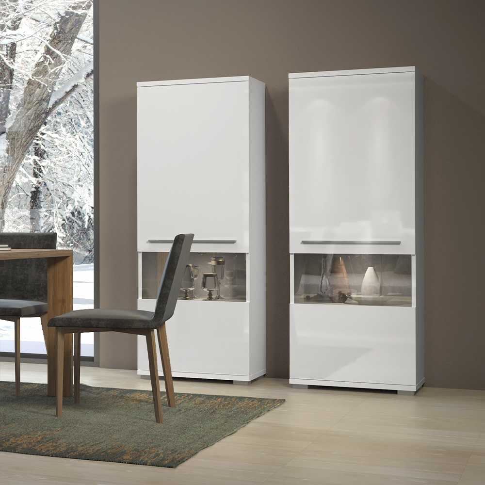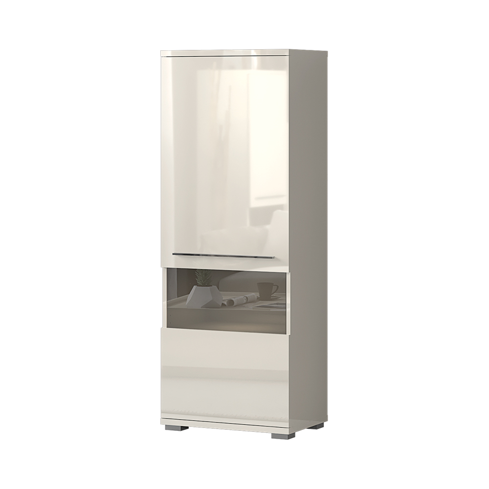 Dulap funcțional, cu un design geometric modern, din colecția Piano, cu o ușă din sticlă.