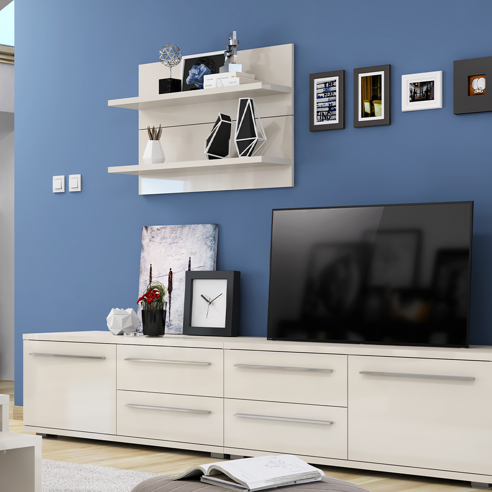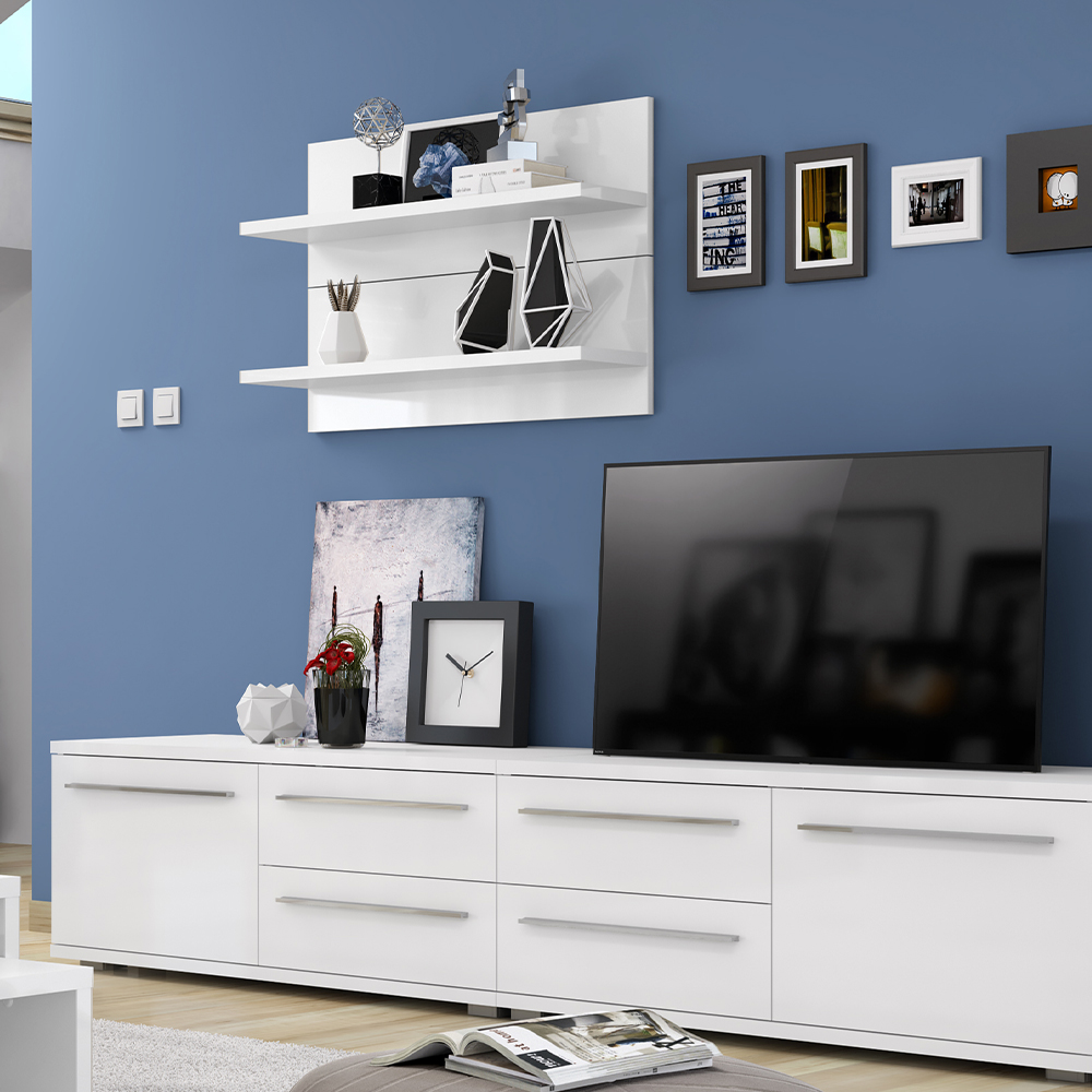 Raft suspendabil din colecția de mobilier Piano, cu o lățime de 90 cm, complet lăcuită utilizând cea mai recentă tehnologie UV în finisaj lucios.
